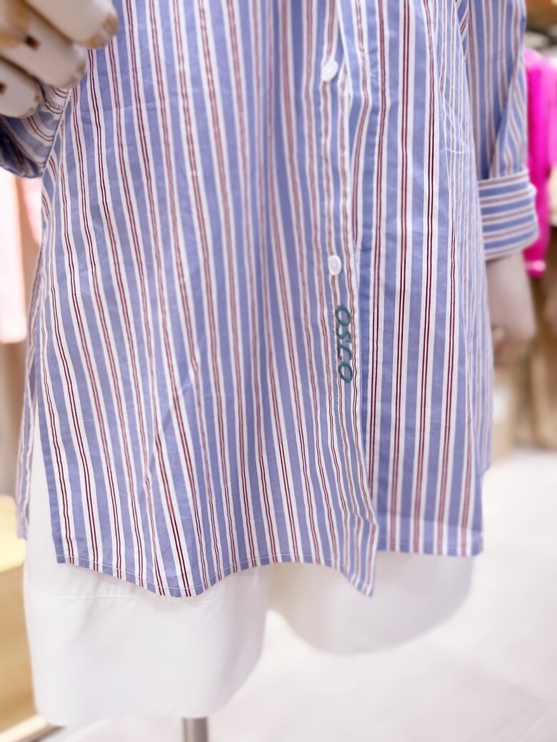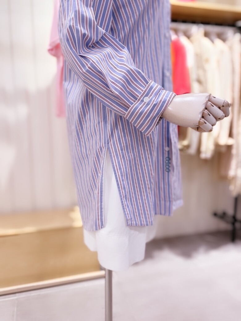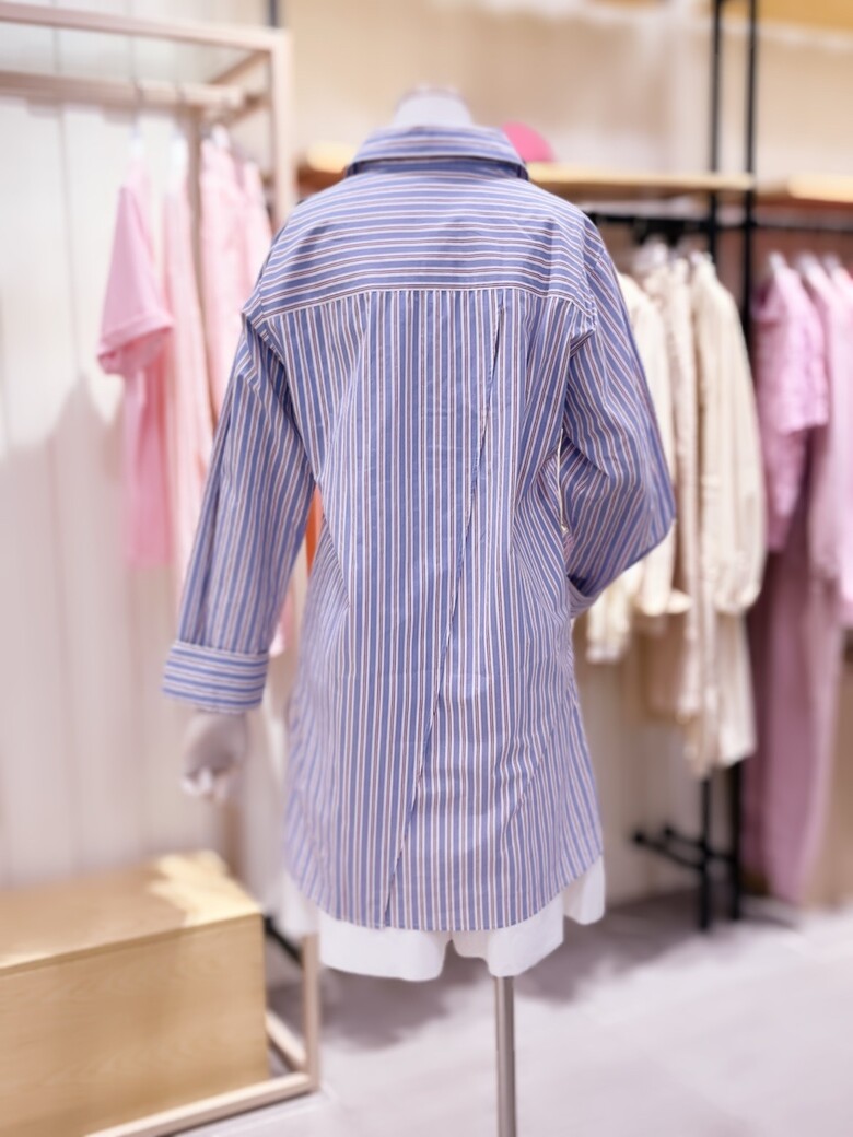 DBSE2SHF258_투톤 스트라이프 소매 턴업셔츠