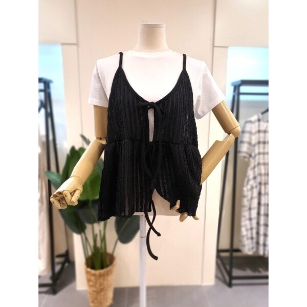 레이어드용 뷔스티에입니다. 오픈형으로 끈이 있어 매듭지어 착용 가능합니다.