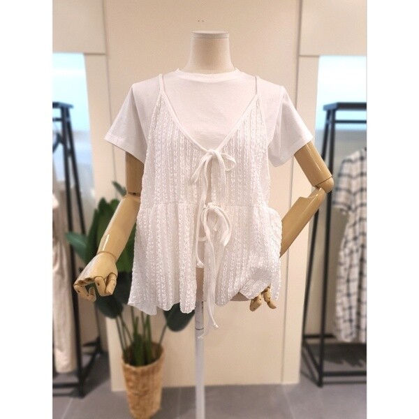 KKSTP602IV_리본 레이어드 뷔스티에 아이보리