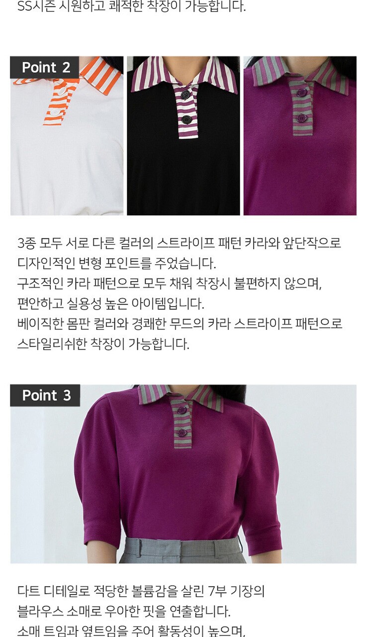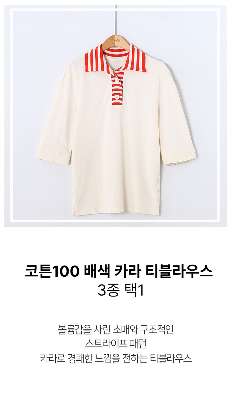 루시앙 코튼100 배색 카라 티블라우스 3종 택1