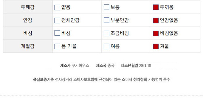 • 표시/광고와 상이, 제품 하자의 경우 수령 후 3개월 이내, 또는 그 사실을 안 날로부터 30일 이내 교환/반품 가능합니다.