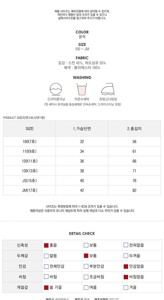 | 6. 세탁방법 및 취급시 주의사항 | 상세페이지참조 |
