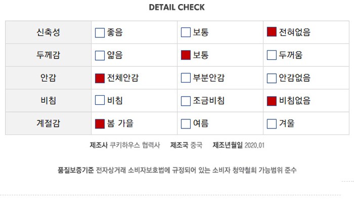 • 처음 배송된 상품상태와 다를 경우(세탁/착용 후 외출하신 경우) 반품이 불가합니다.