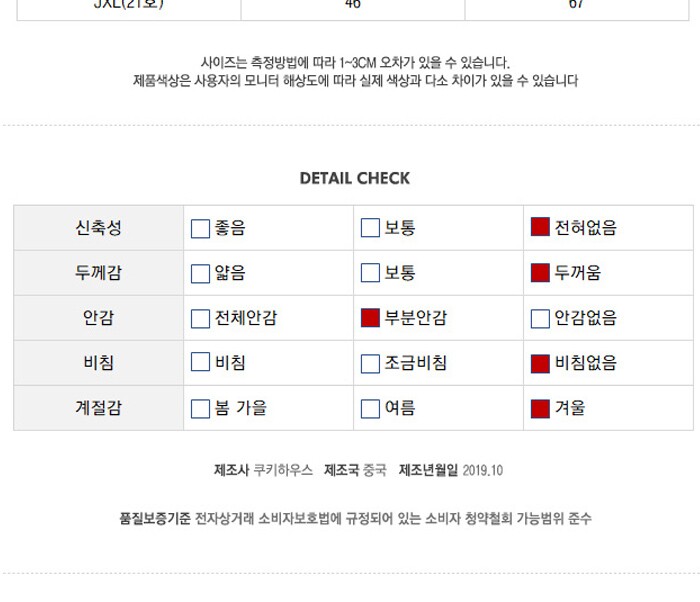 • 처음 배송된 상품상태와 다를 경우(세탁/착용 후 외출하신 경우) 반품이 불가합니다.