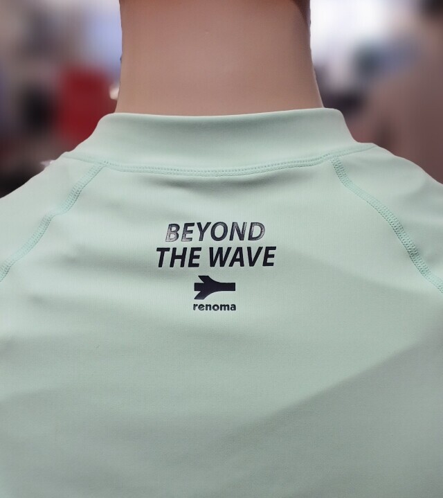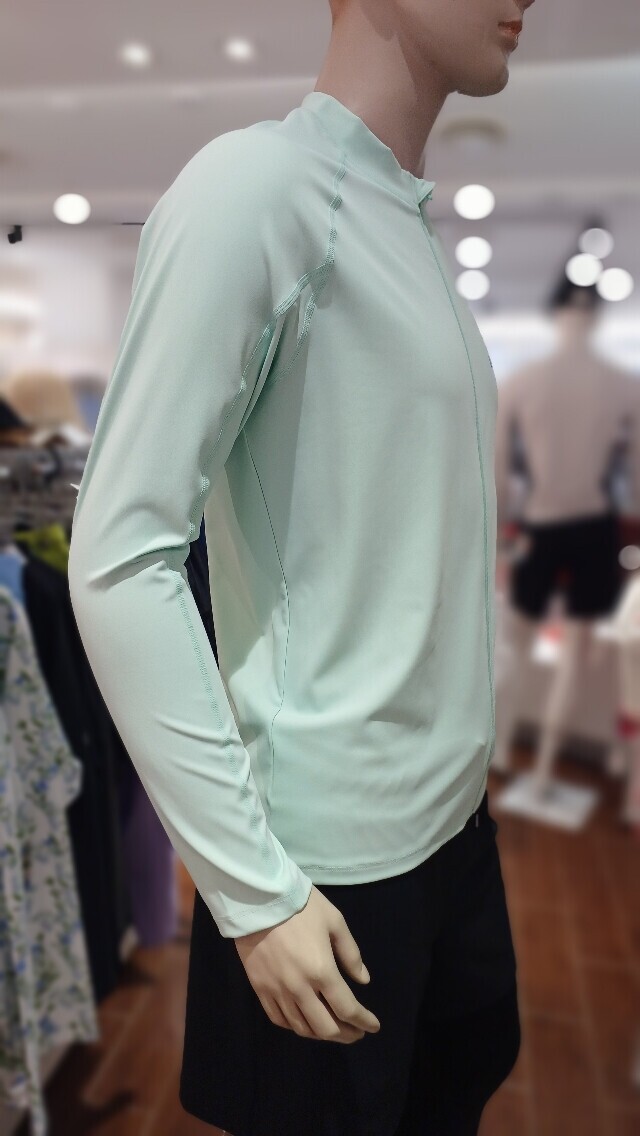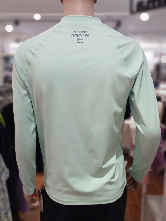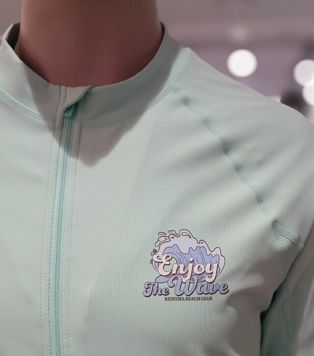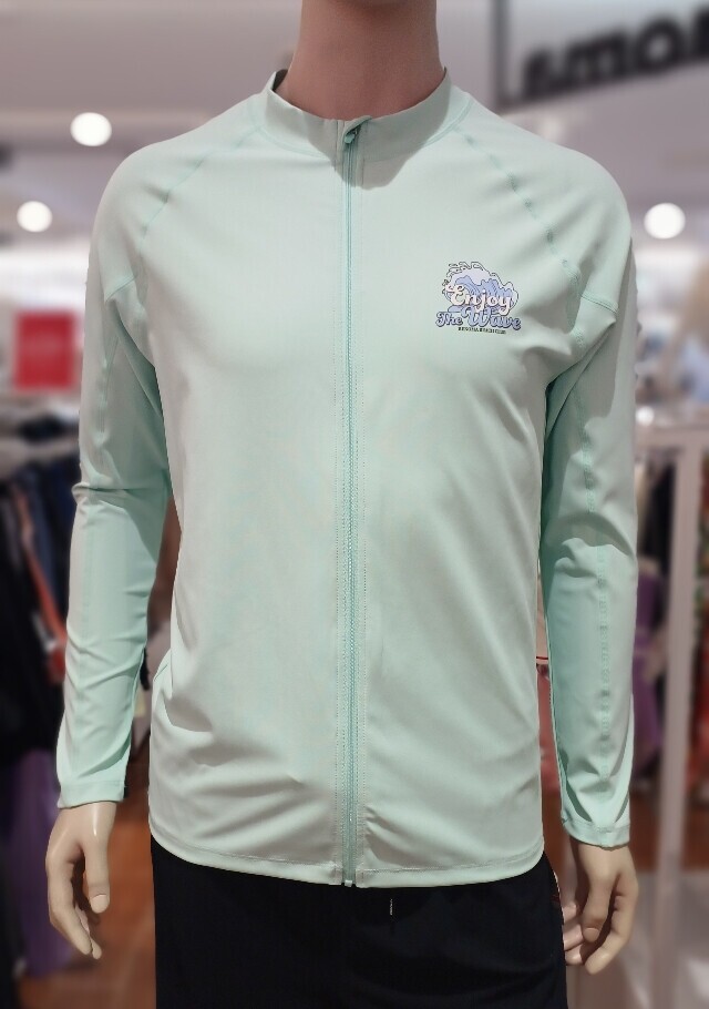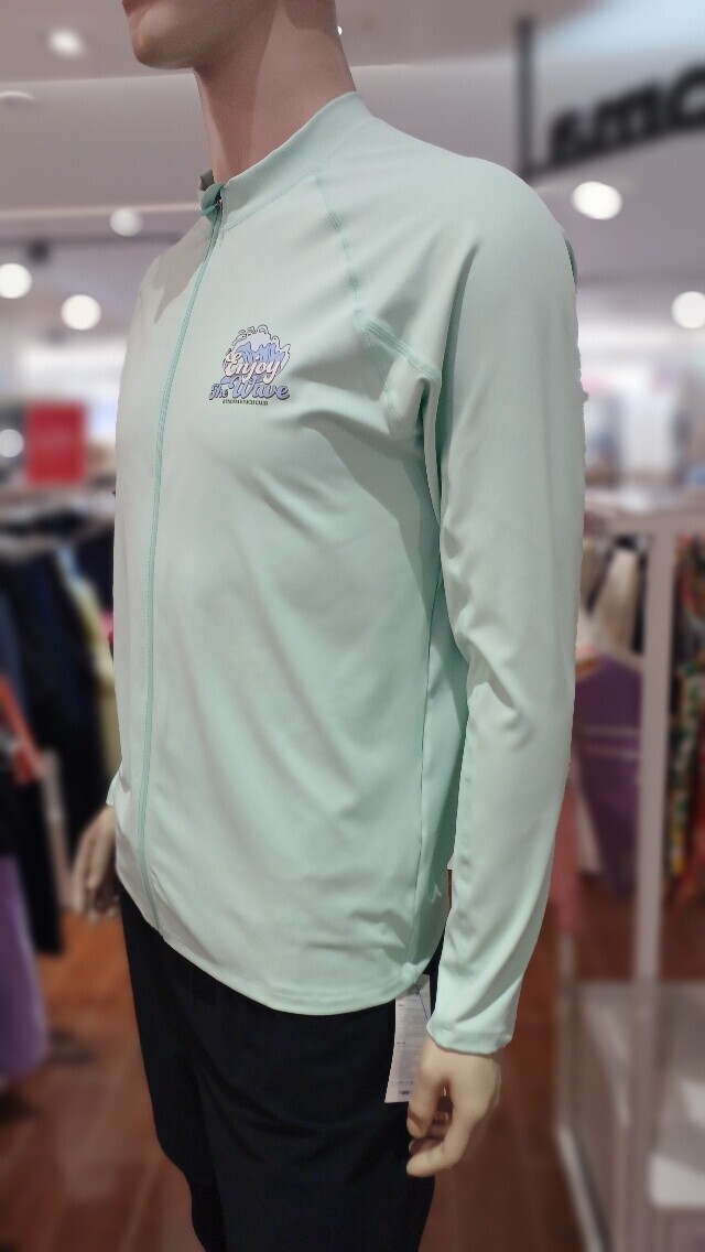 소프트 한 컬러감과 스포티 한 슬로건 로고가 포인트 인 루즈핏 집업 래쉬가드입니다 .