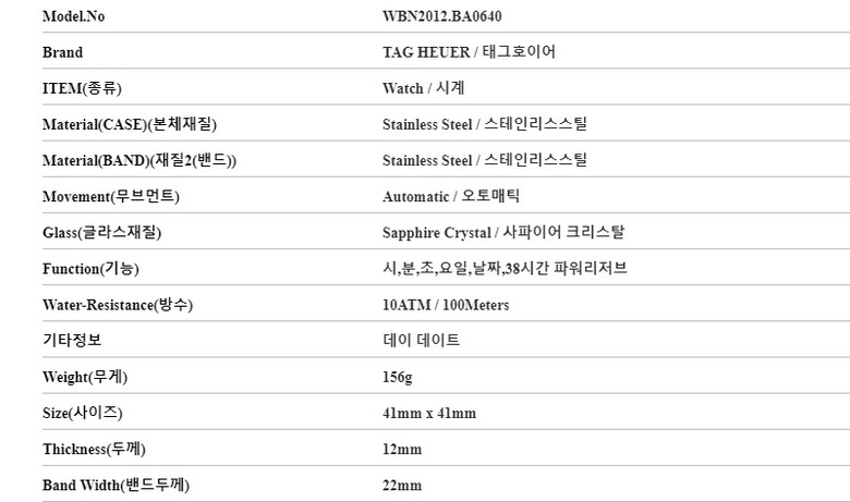 [명품] WBN2012.BA0640 까레라 남성 메탈시계
