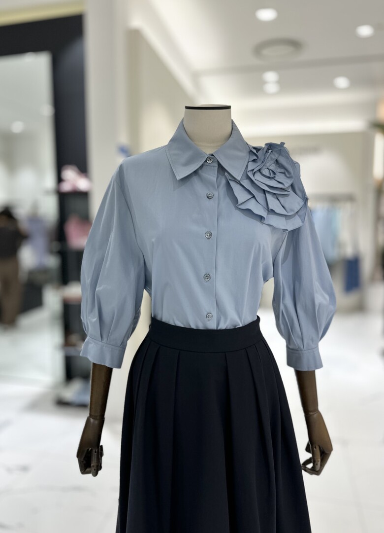 모조에스핀 코사지세트 스탠카라 블라우스 J243MSC004