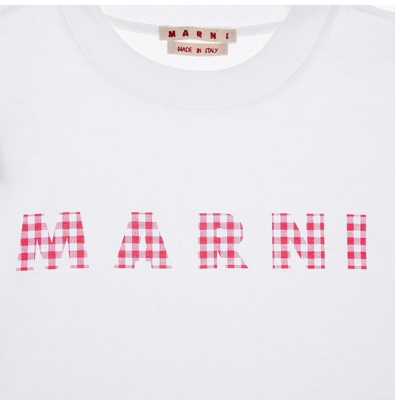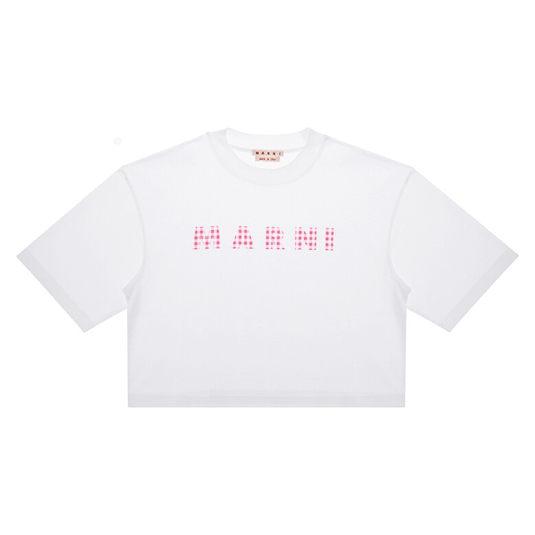 - #리본즈코리아 #THJE0333P6USCX52G1W01 #[명품] #마르니 #THJE0333P6 #USCX52 #G1W01 #체크 #로고 #크롭 #여성 #반팔티 #의류 #상의 #티셔츠