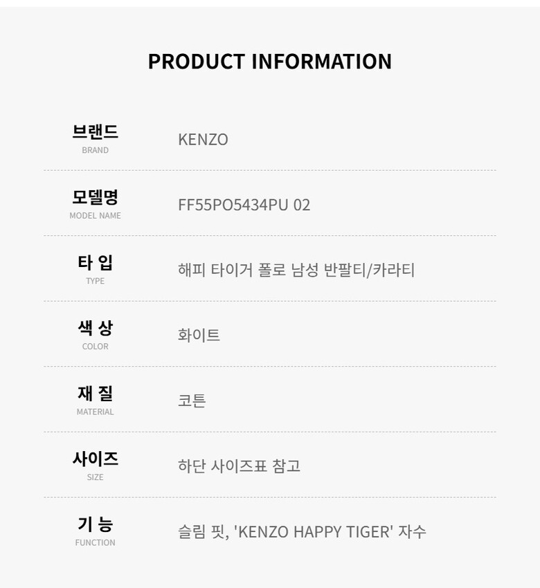 #리본즈코리아 #FF55PO5434PU02 #[명품] #겐조 #FF55PO5434PU #02 #해피 #타이거 #폴로 #남성 #반팔티 #의류 #상의 #피케셔츠폴로티