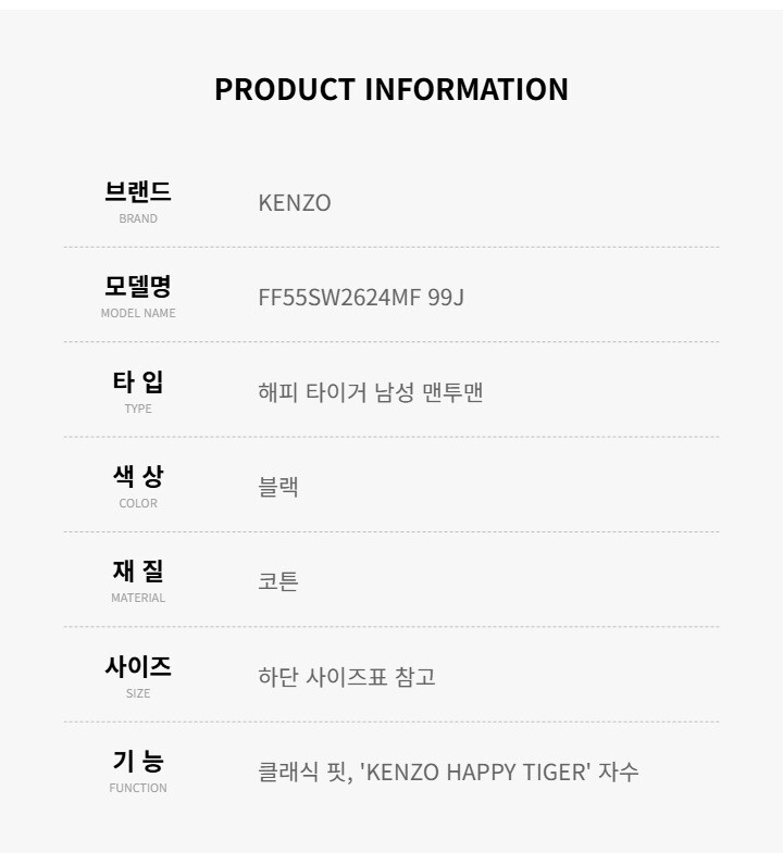 [명품] 겐조 FF55SW2624MF 99J 해피 타이거 남성 맨투맨