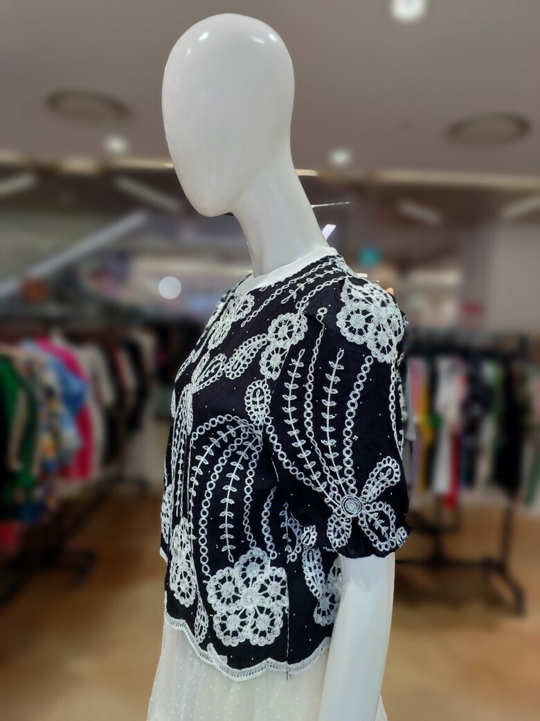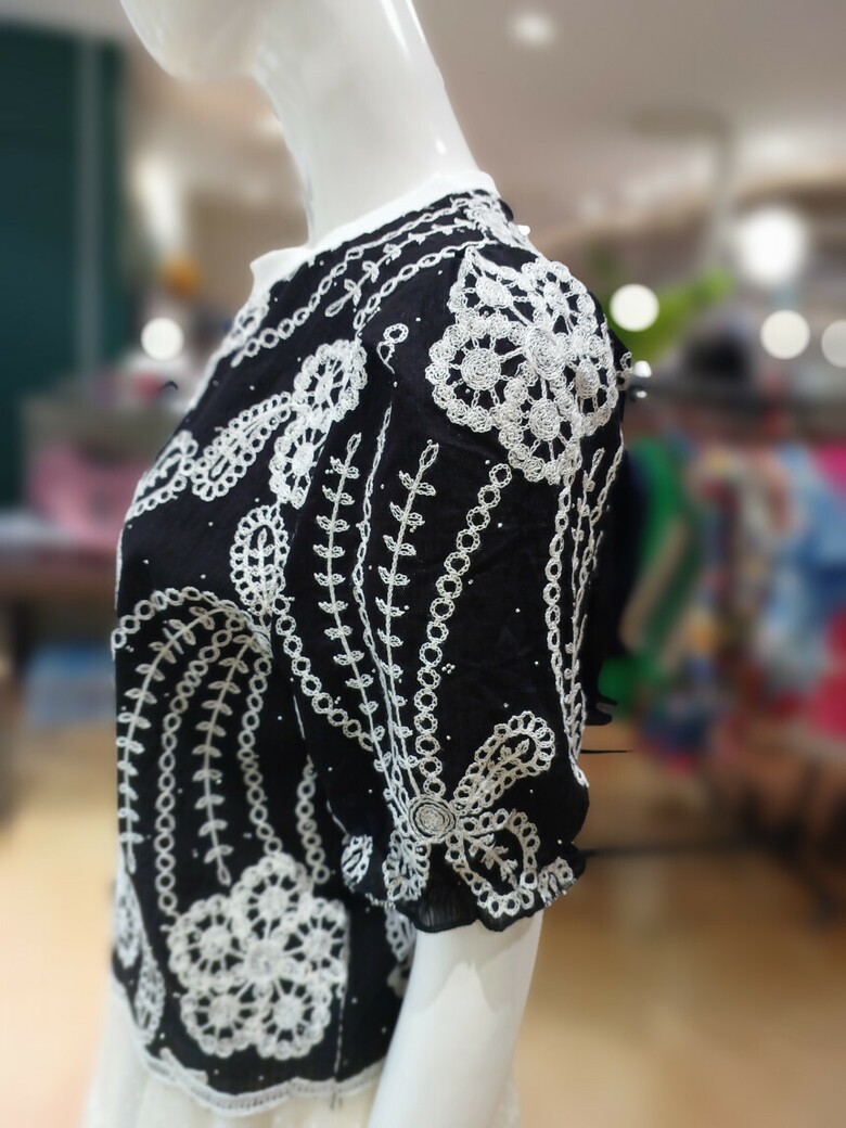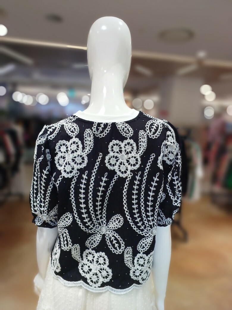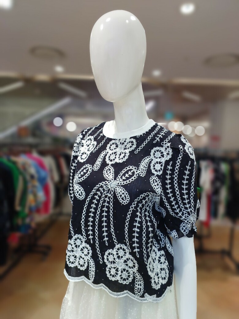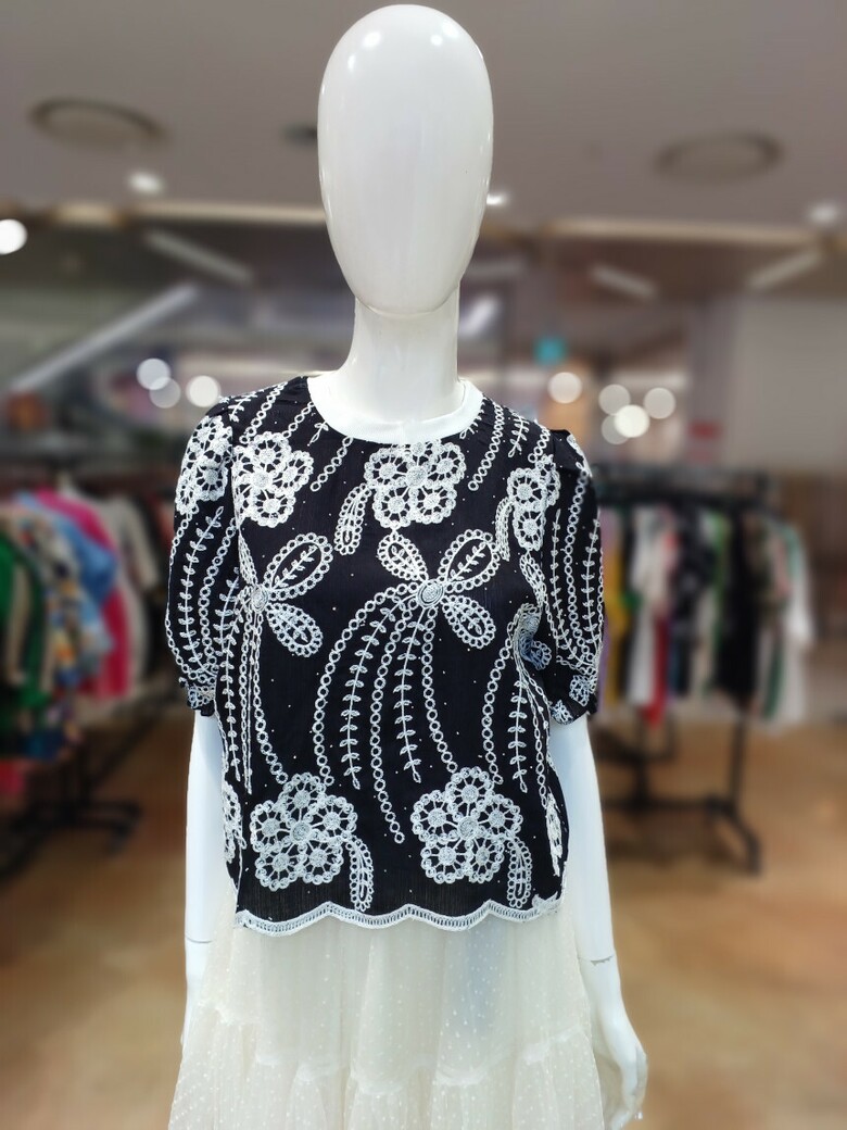 르니앤맥코이 자수배색 퍼프 반팔 블라우스MM08BL718