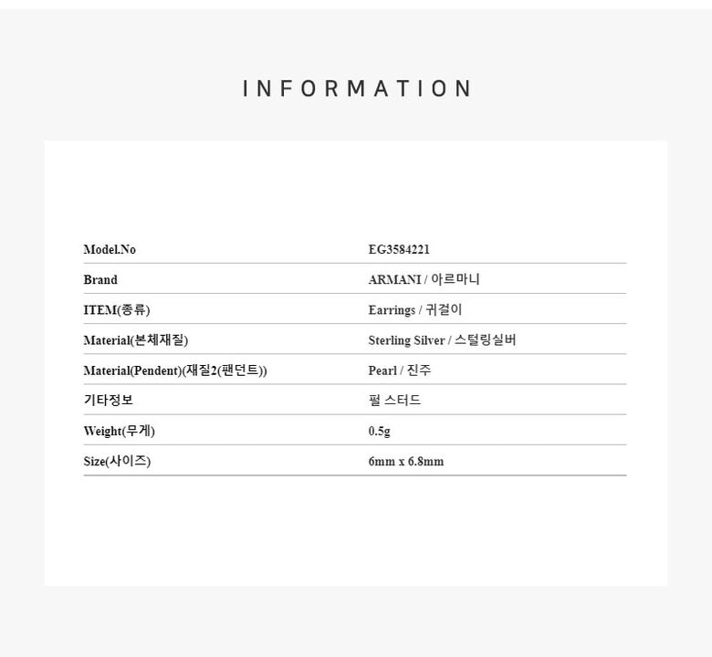 아르마니 EG3584221 이글 로고 펄 스터드 실버 귀걸이