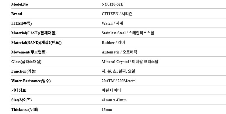시티즌 NY0120-52E 프로마스터 마린 다이버 오토매틱 남성 우레탄 시계