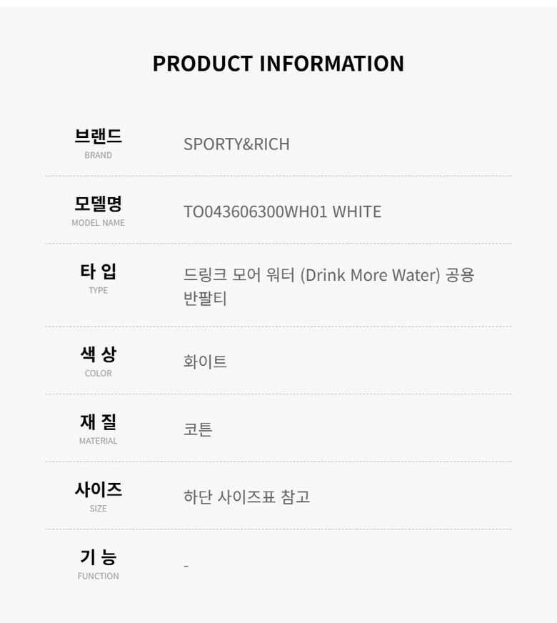 스포티앤리치 TO043606300WH01 WHITE 드링크 모어 워터 (Drink More Water) 공용 반팔티