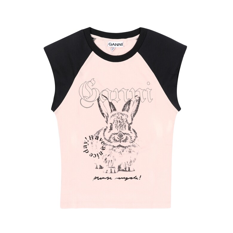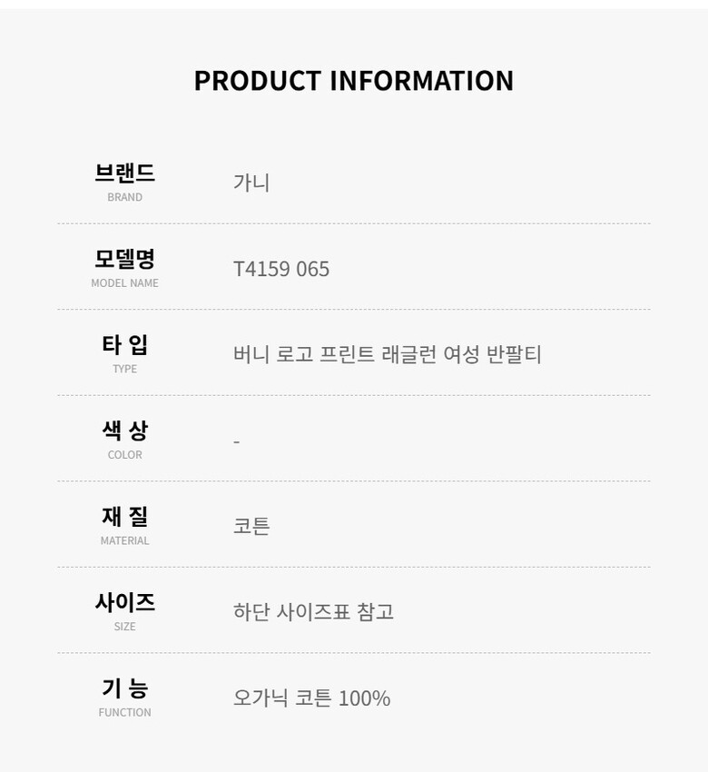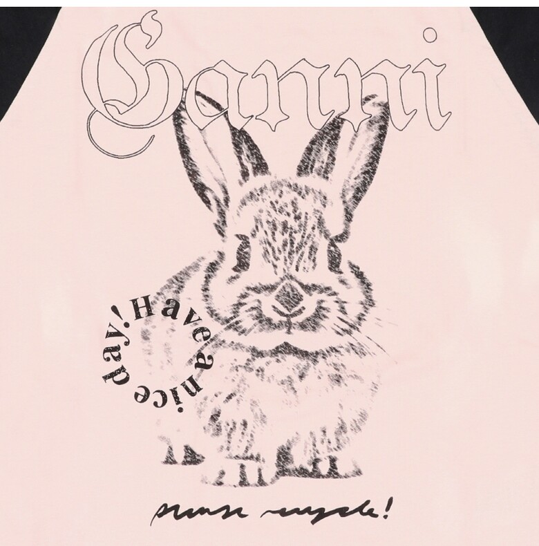 가니 T4159 065 버니 로고 프린트 래글런 여성 반팔티