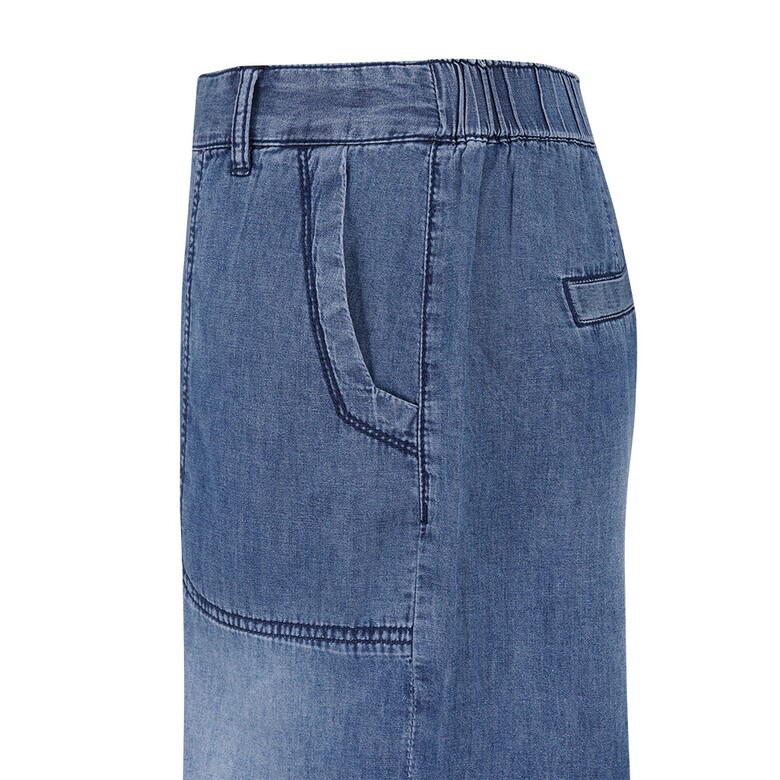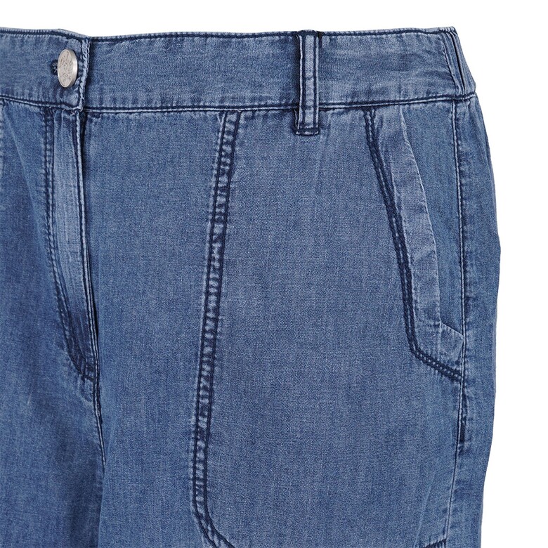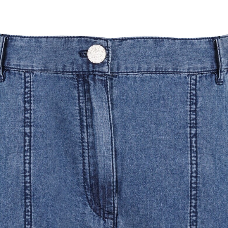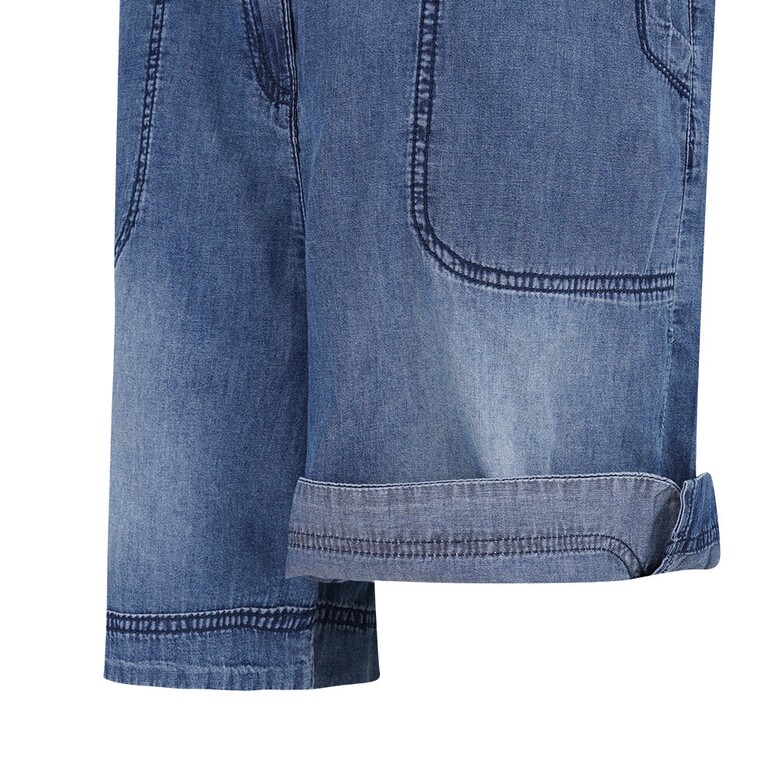 앞밑단에 트임과 리벳으로 포인트를 준 데님 반바지입니다.