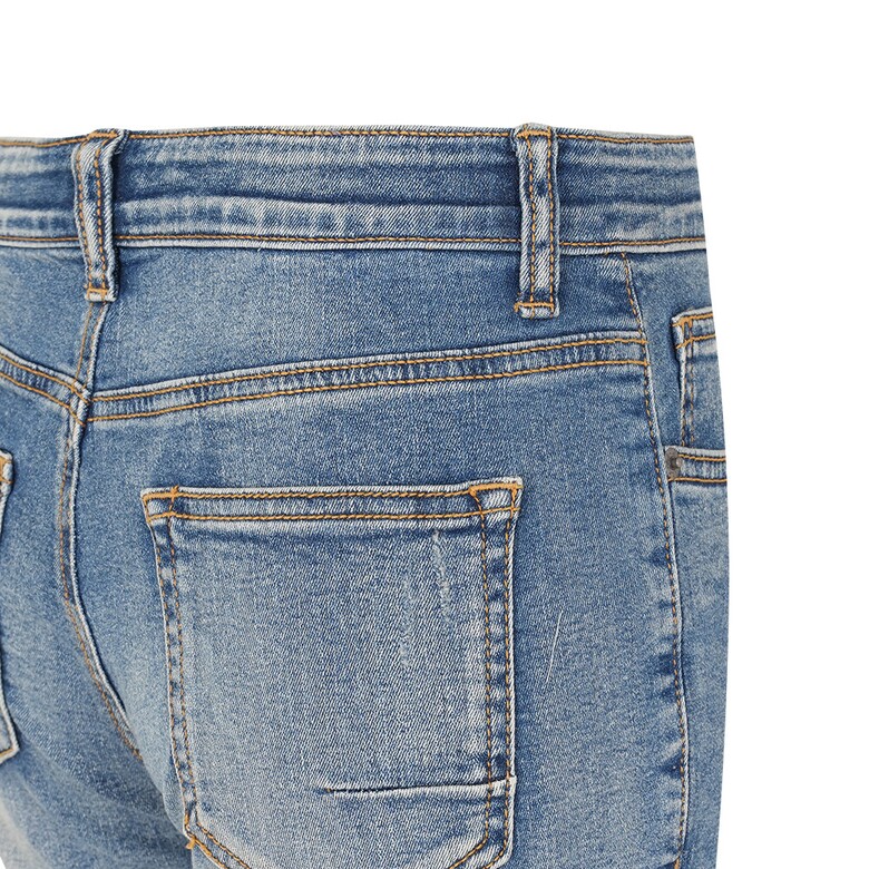 밑단에 데끼가 들어간 일자핏 데님입니다.
