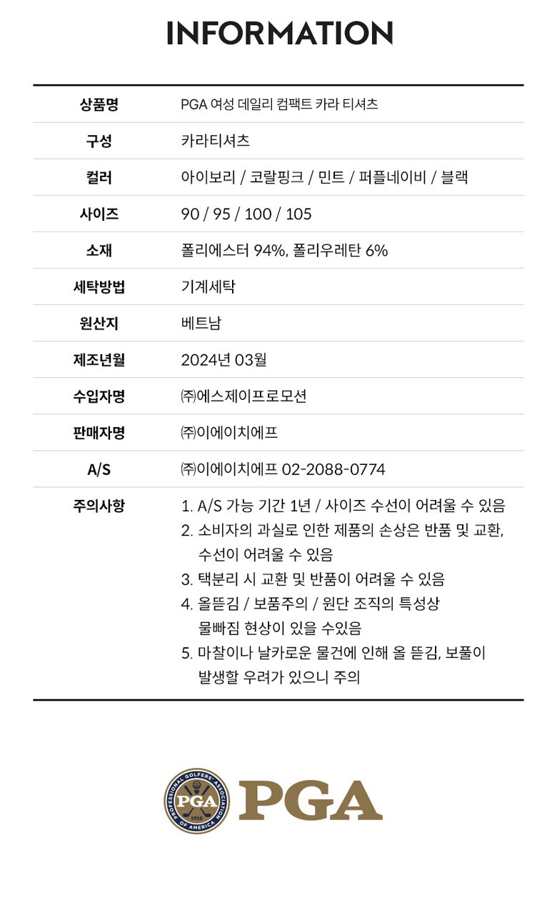 PGA 여성 데일리 컴팩트 반팔 카라 티셔츠 (아이보리)