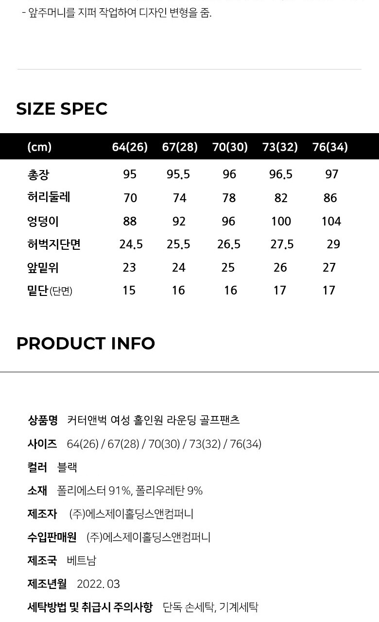 1. 제품 소재 (섬유의 조성 또는 혼용률을 백분율로 표시, 기능성인 경우 성적서 또는 허가서) | 폴리에스터91% 폴리우레탄9% |