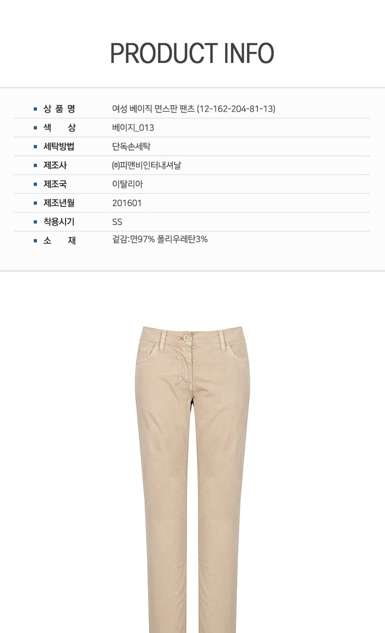 여성 베이직 면스판 팬츠 12-162-204-81-13