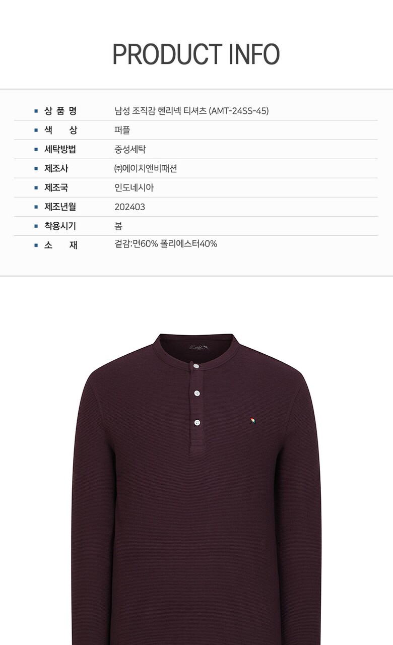 아놀드파마 남성 조직감 헨리넥 티셔츠_PU