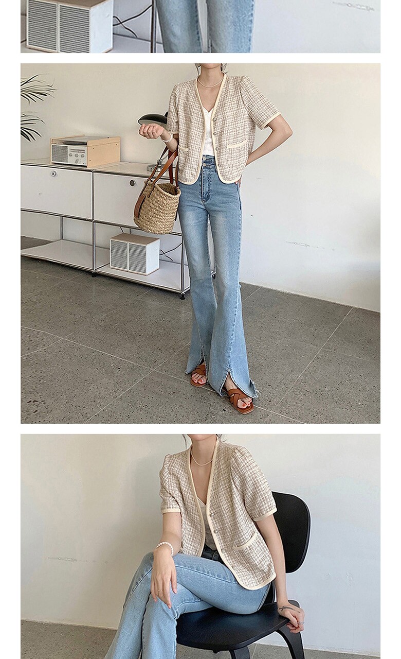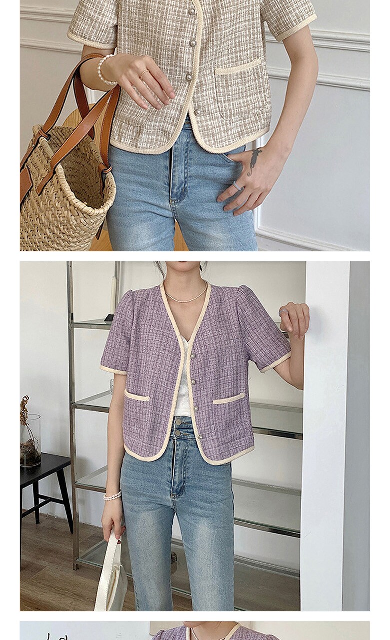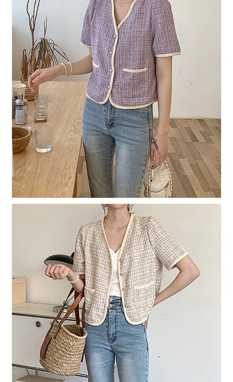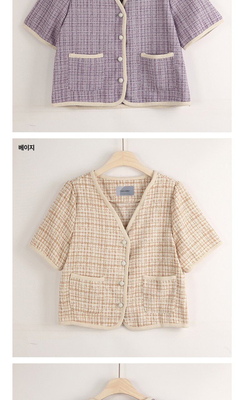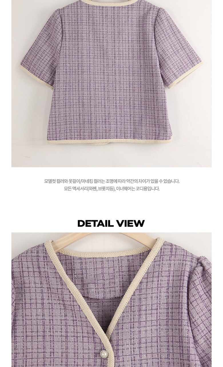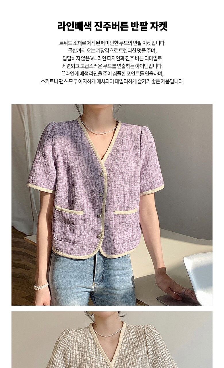 라인배색 진주버튼 반팔 자켓_O2506JK604B