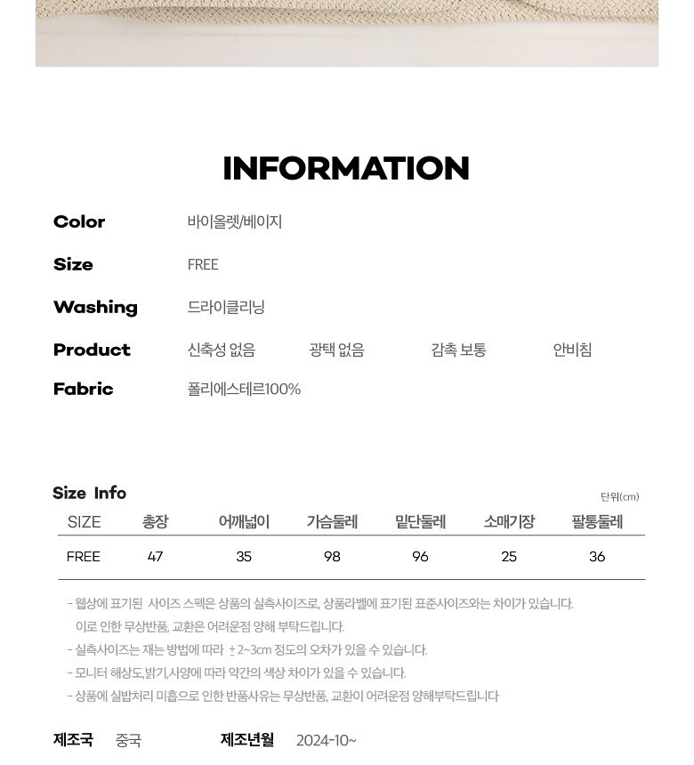 1. 제품 소재 (섬유의 조성 또는 혼용률을 백분율로 표시, 기능성인 경우 성적서 또는 허가서) | 폴리에스테르100% |