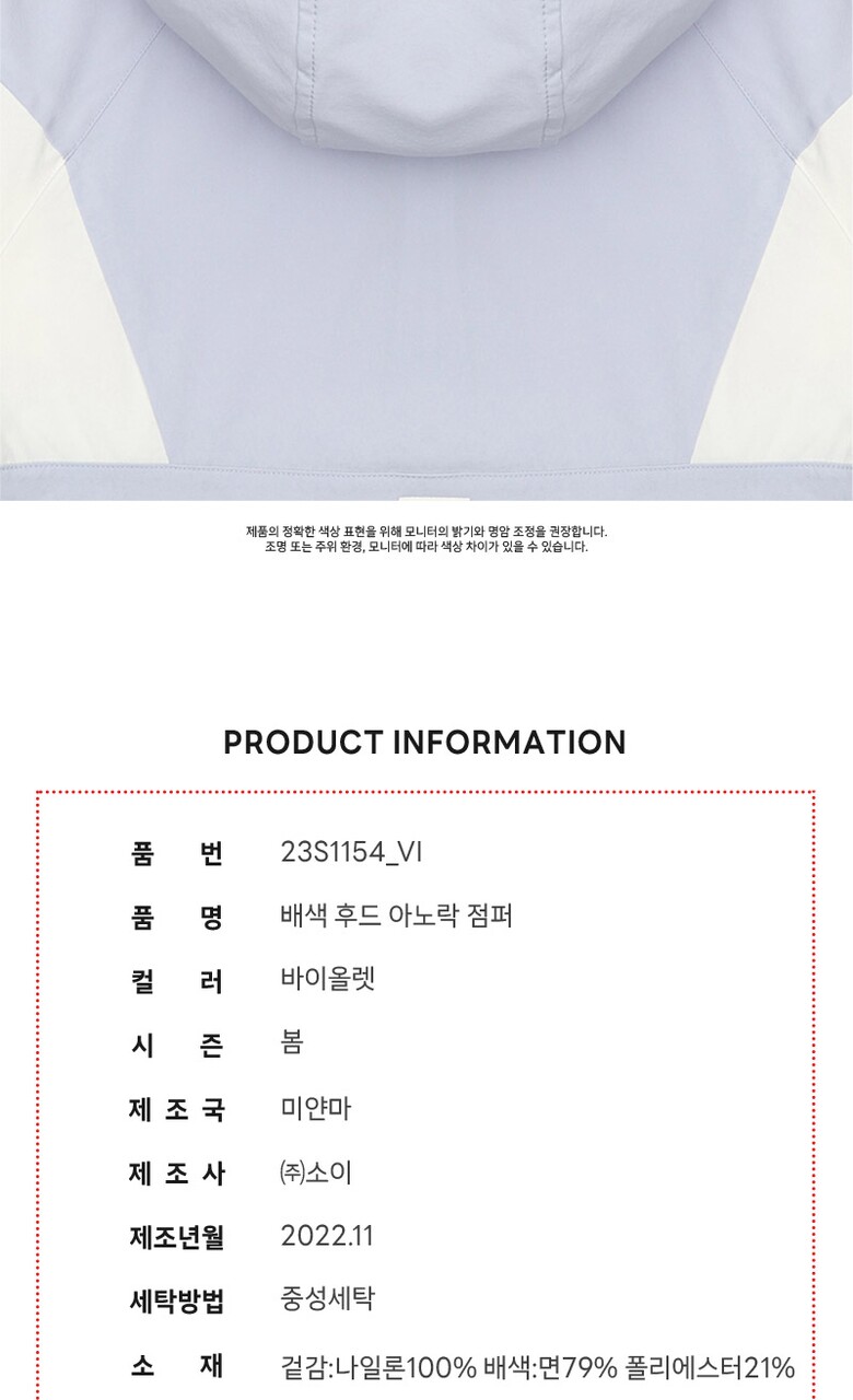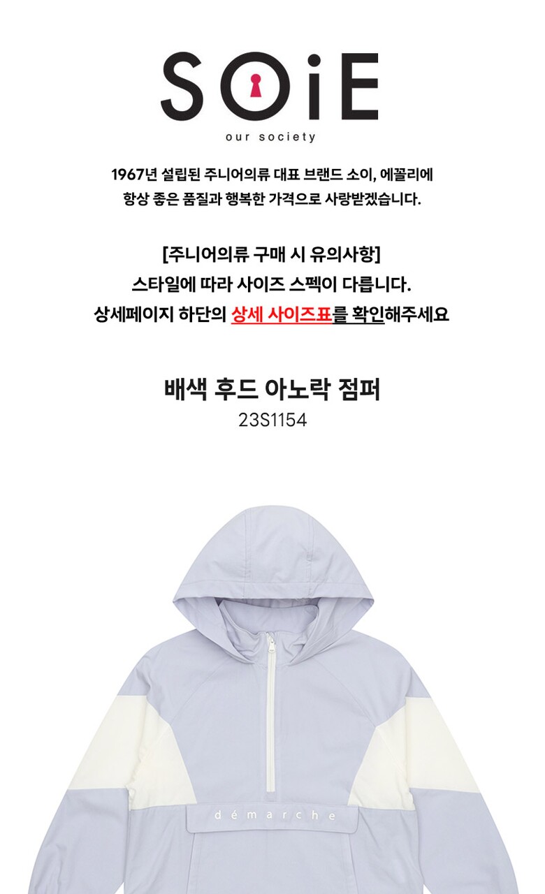 여아 배색 후드 아노락 점퍼 23S1154_VI