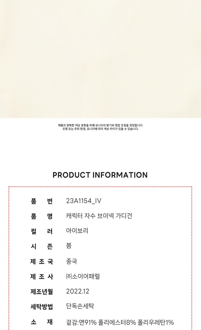 여아 캐릭터 자수 브이넥 가디건 23A1154_IV
