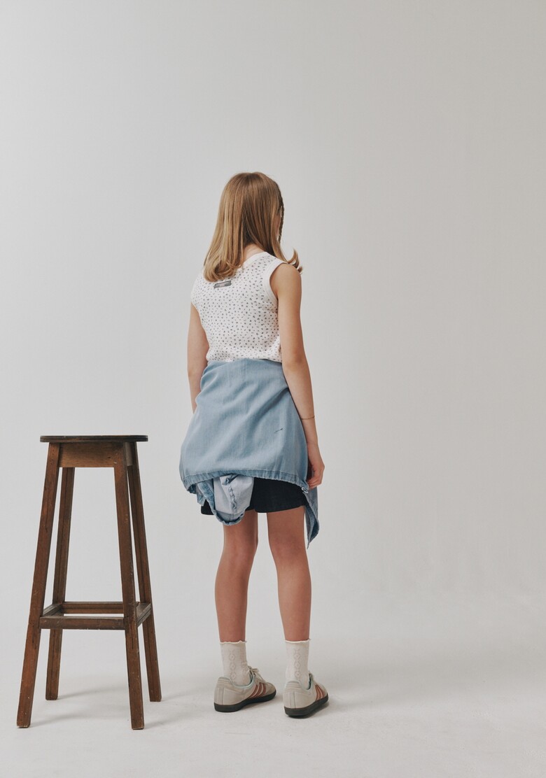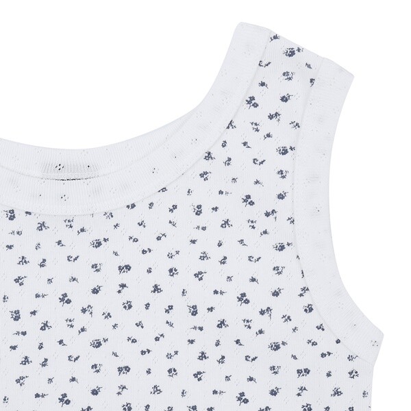 클린한 화이트 컬러로 제안한 플라워 프린팅 슬리브리스입니다.