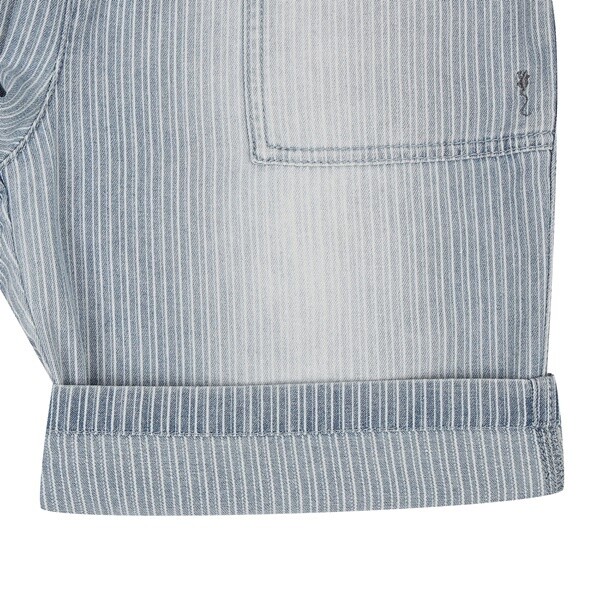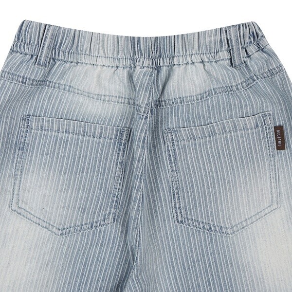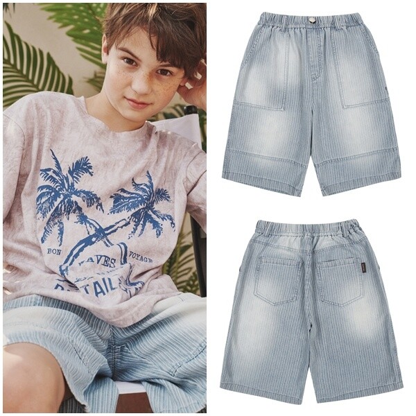 스트라이프 패턴의 하프 기장 데님 팬츠입니다.