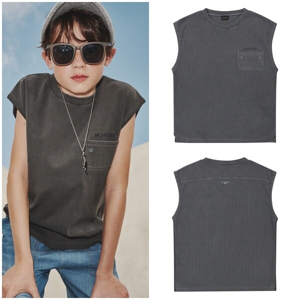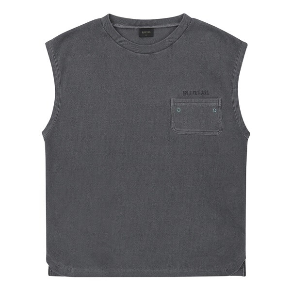 피그먼트 립조직으로 빈티지한 차콜 컬러 슬리브리스입니다.
