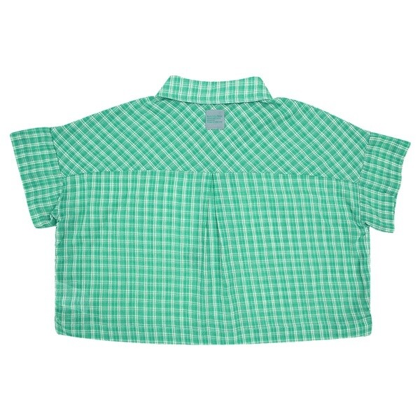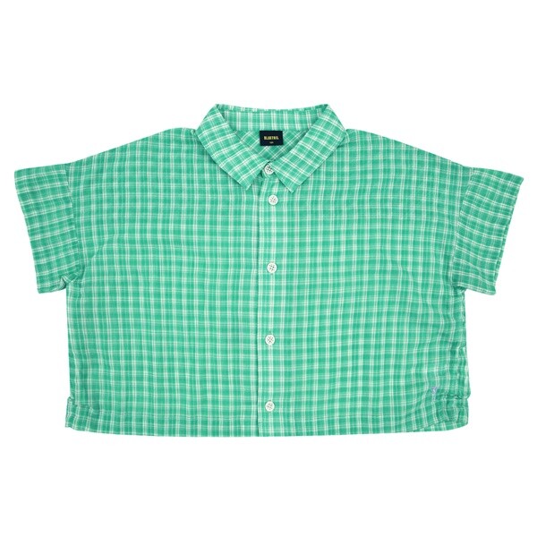 시원한 그린 컬러 체크 패턴 반팔 셔츠입니다.