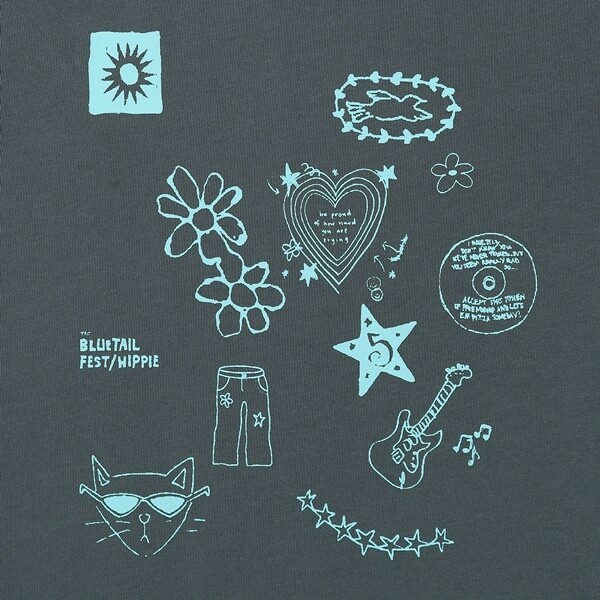 히피&페스티벌을 연상시키는 아이템들을 콜라주한 듯이 손그림으로 민트로 컬러 포인트를 준 상품입니다.