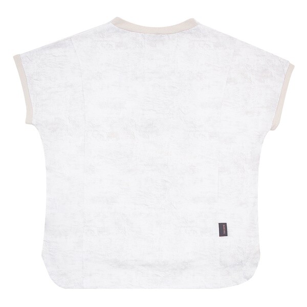 다잉 착시 효과를 주는 전판 나염의 화이트 반팔 티셔츠입니다.