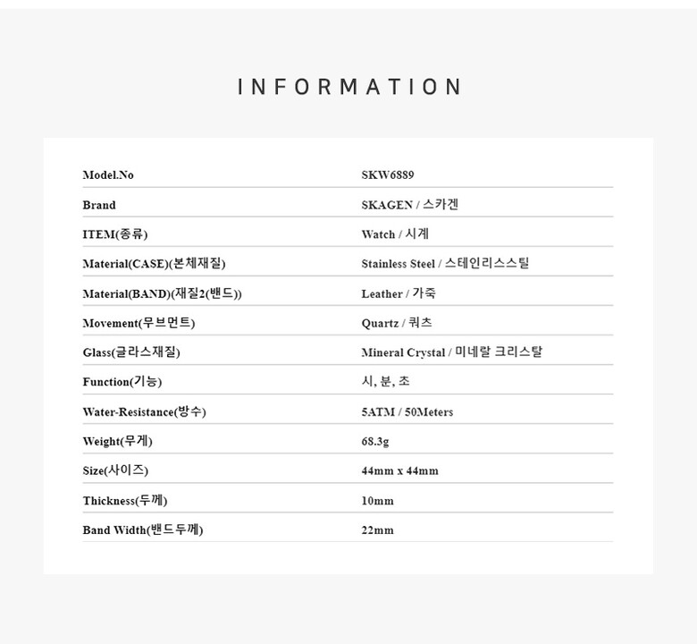 | 1. 소재 / 순도 / 밴드재질 | 화이트/ 케이스 - 스테인리스스틸 / 밴드 - 가죽 |