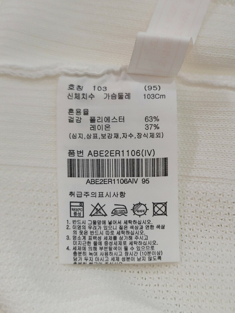 | 1. 제품 소재 (섬유의 조성 또는 혼용률을 백분율로 표시, 기능성인 경우 성적서 또는 허가서) | 겉감:폴리에스테르 63%, 레이온 37% |