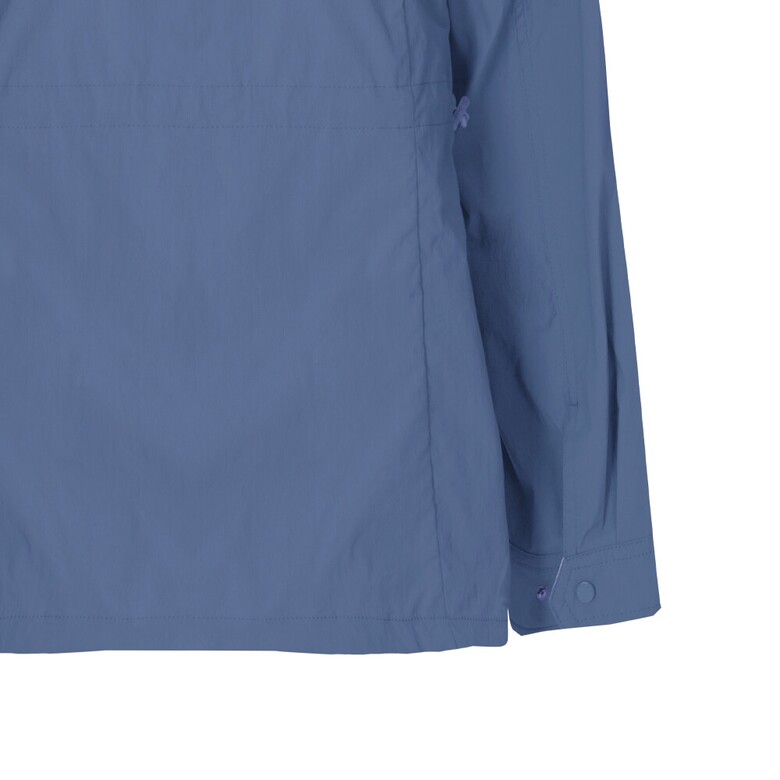 가벼운 나일론 소재를 사용한 사파리 형태의 점퍼. 앞 자수 포인트로 화사함을 더했고 허리 스트로우 기능으로 날씬해 보이는 핏감의 아이템.