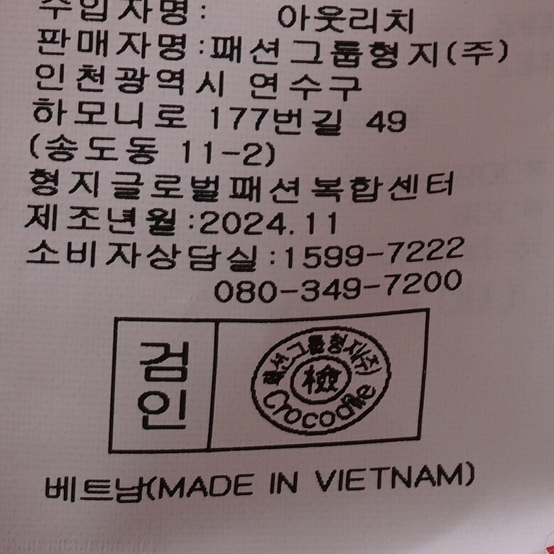 | 6. 세탁방법 및 취급시 주의사항 | 상품상세참조 |