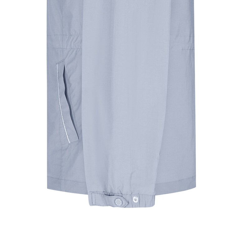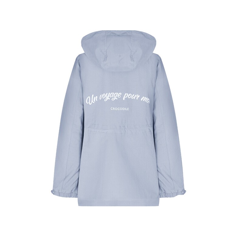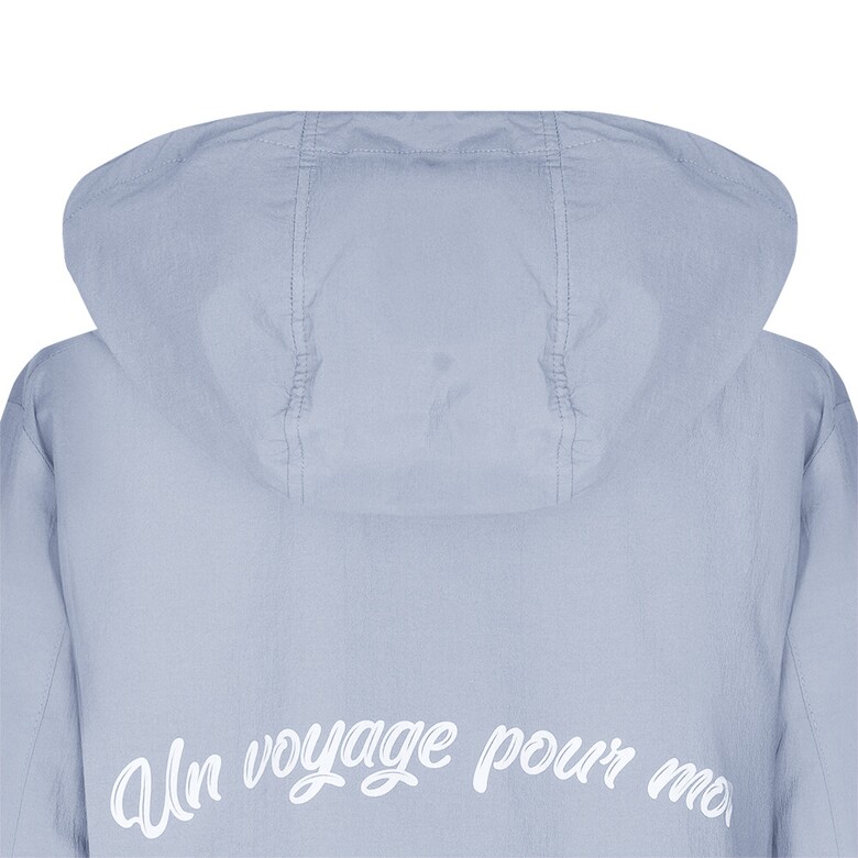 나일론 코튼 혼방 소재로 가볍게 착용이 가능한 솔리드 점퍼로|*| 뒤 프린트와 부분 배색이 캐주얼한 느낌을 주는 후드 탈부착 점퍼.