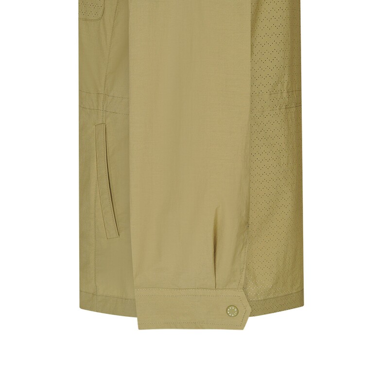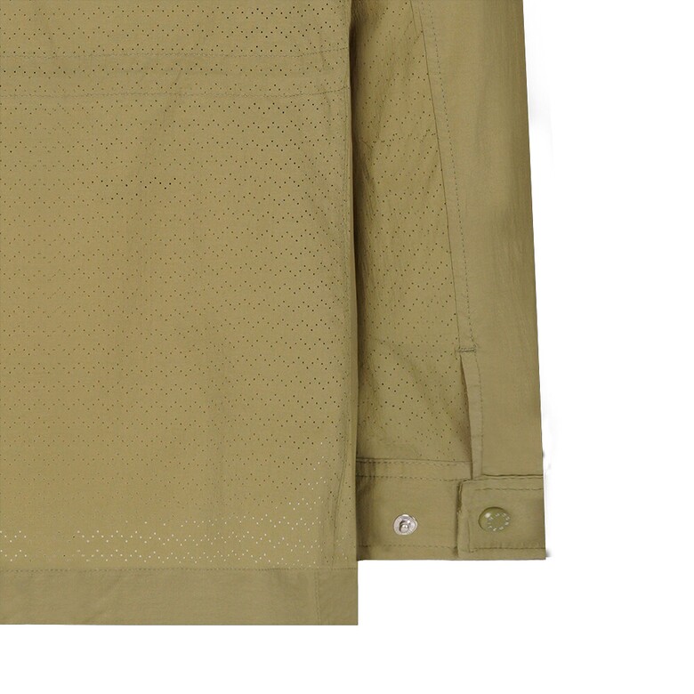가벼운 나일론 혼방 소재를 사용한 사파리형 점퍼. 펀칭소재를 믹스하여 시원하고 데일리하게 입기 용이한 아이템
