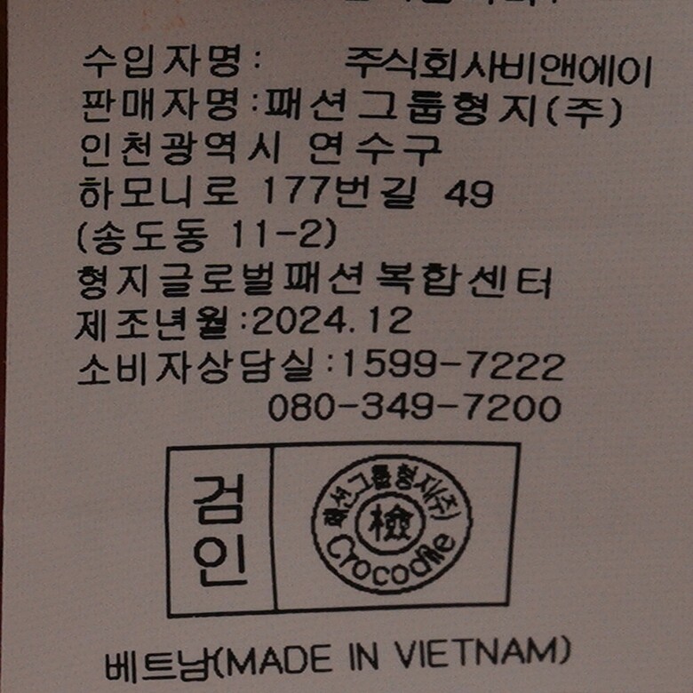 | 1. 제품 소재 (섬유의 조성 또는 혼용률을 백분율로 표시, 기능성인 경우 성적서 또는 허가서) | 상품상세참조 |