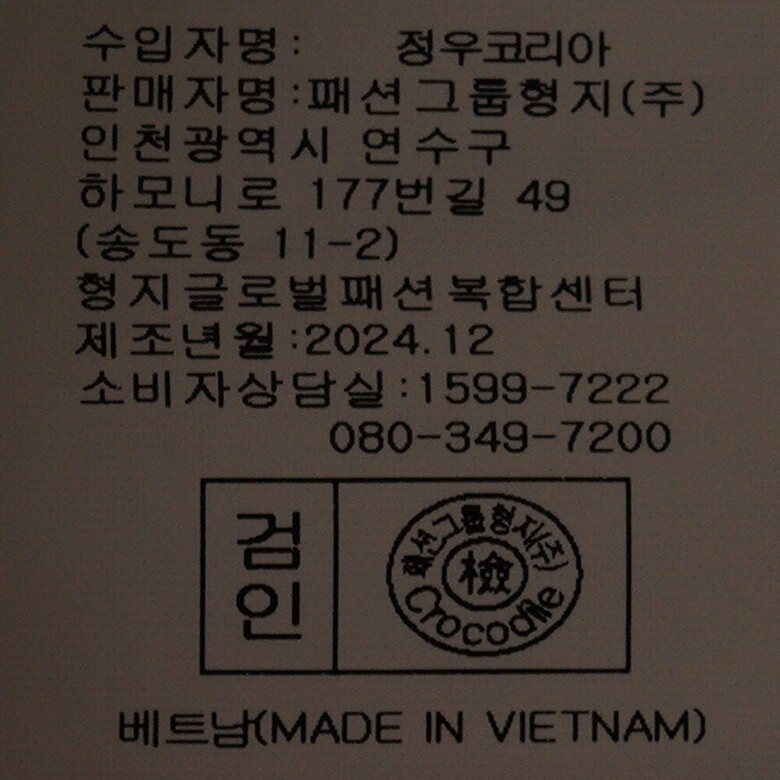 | 1. 제품 소재 (섬유의 조성 또는 혼용률을 백분율로 표시, 기능성인 경우 성적서 또는 허가서) | 상품상세참조 |