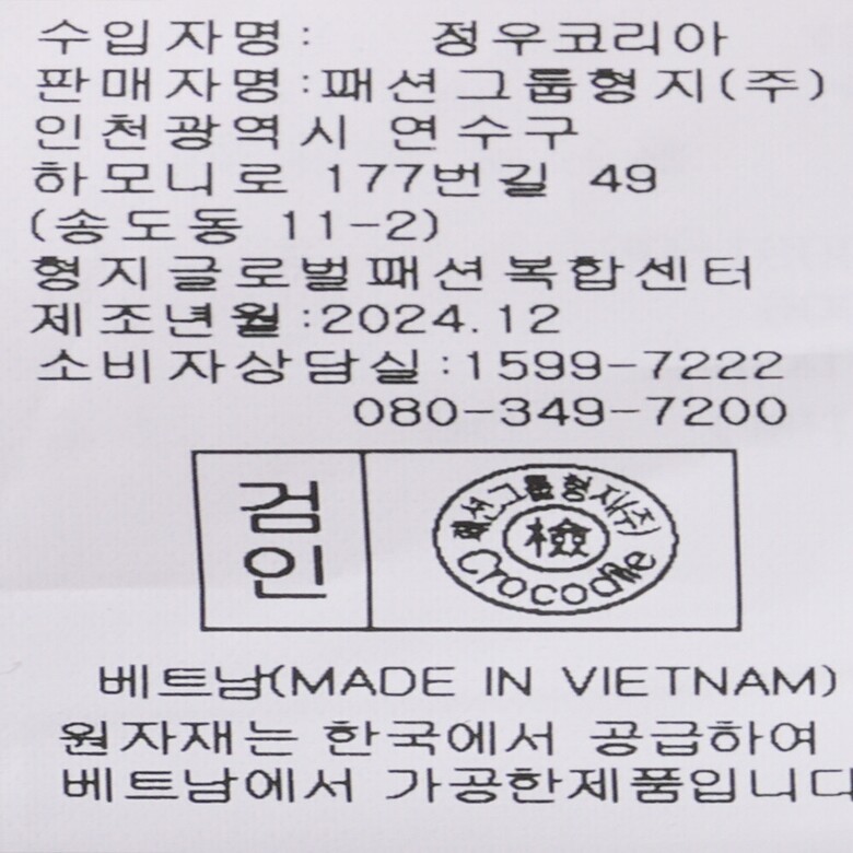 | 1. 제품 소재 (섬유의 조성 또는 혼용률을 백분율로 표시, 기능성인 경우 성적서 또는 허가서) | 상품상세참조 |