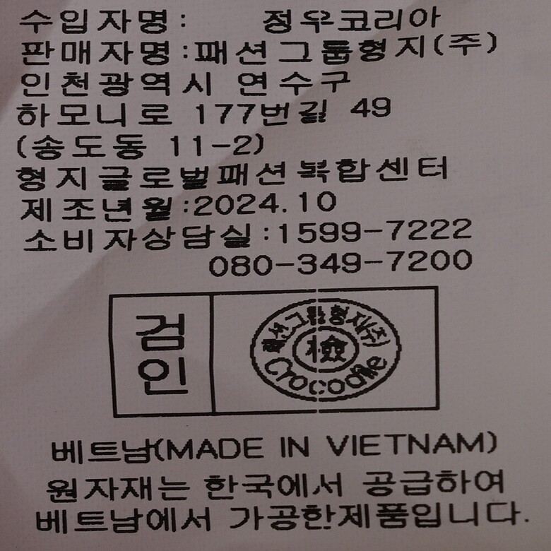 • 아울렛 상품의 특성 상 “택이 훼손”된 경우가 있으나 이는 불량이 아니며 무료 반품 대상 상품이 아닙니다.