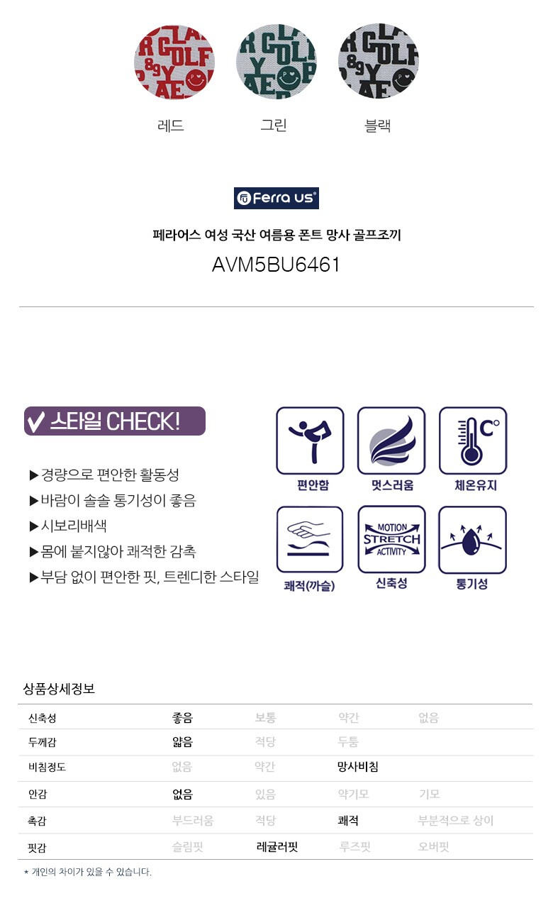 골피아 여성 국산 여름용 폰트 망사 골프조끼 AVM5BU6461