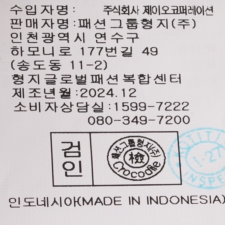 1. 제품 소재 (섬유의 조성 또는 혼용률을 백분율로 표시, 기능성인 경우 성적서 또는 허가서) | 상품상세참조 |