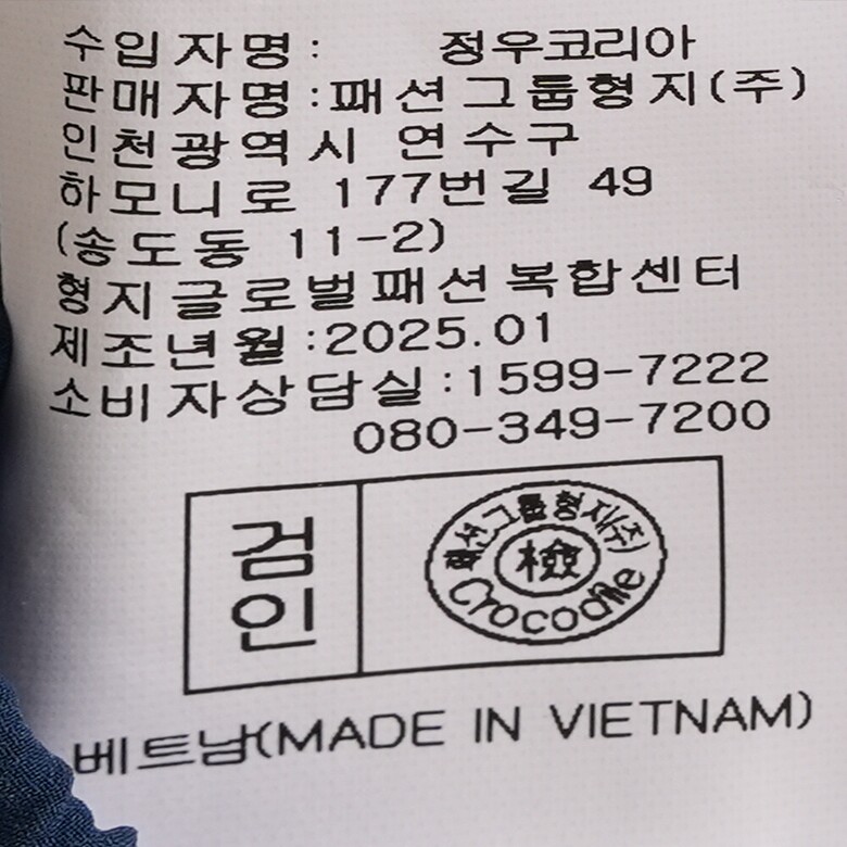| 1. 제품 소재 (섬유의 조성 또는 혼용률을 백분율로 표시, 기능성인 경우 성적서 또는 허가서) | 상품상세참조 |