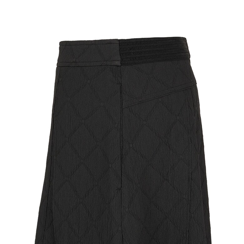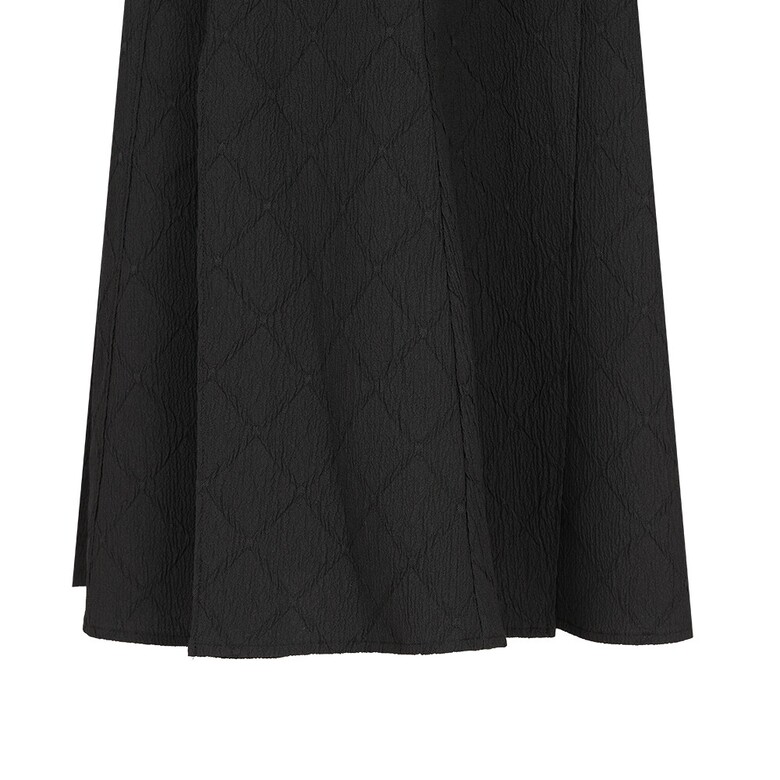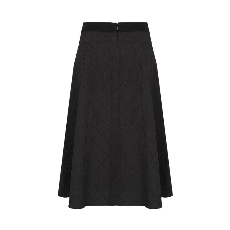 입체감있는 질감의 텍스쳐로 제작된 플레어 스커트입니다. 앞뒤 절개와 턱 디테일로 밑단까지 풍성하게 플레어지는 디자인입니다. 뒤 오비에 이밴드를 넣어 편안한 착용감을 더해주었습니다.