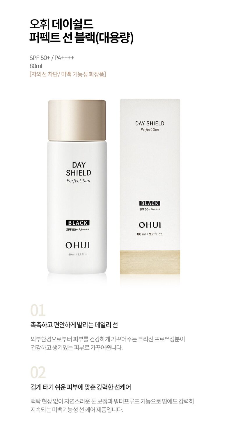 오휘 데이쉴드 퍼펙트 선 블랙 80ml / 대용량 데일리 선크림